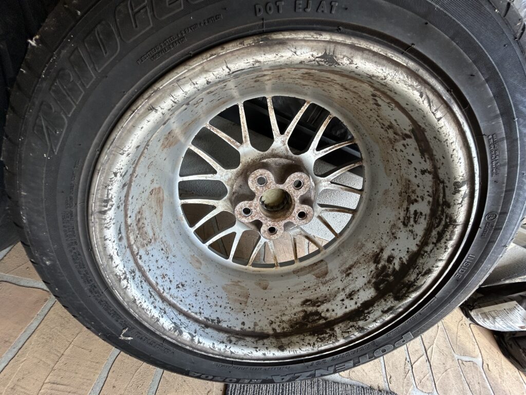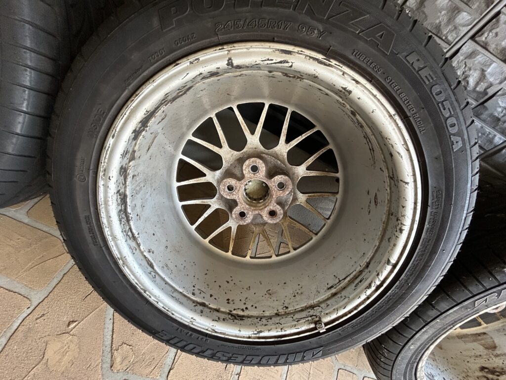 車両購入時に履いてたんですが、内2本にドラシャのグリス付いてたので少しでも綺麗にしておきます