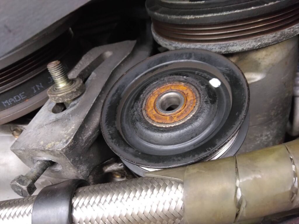 エアコンのプーリーを外して触診してみましたが問題なしでした