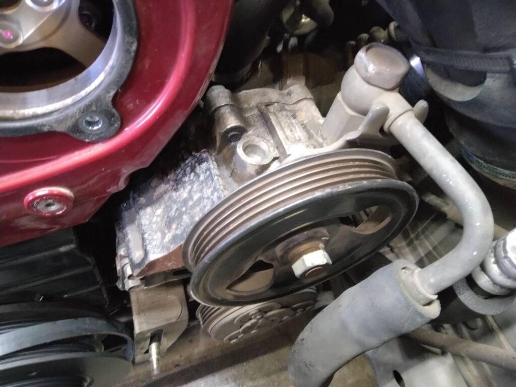 代表のチェックでパワステポンプの軸から異音が出ていたので、お客様にご連絡して追加作業になりました