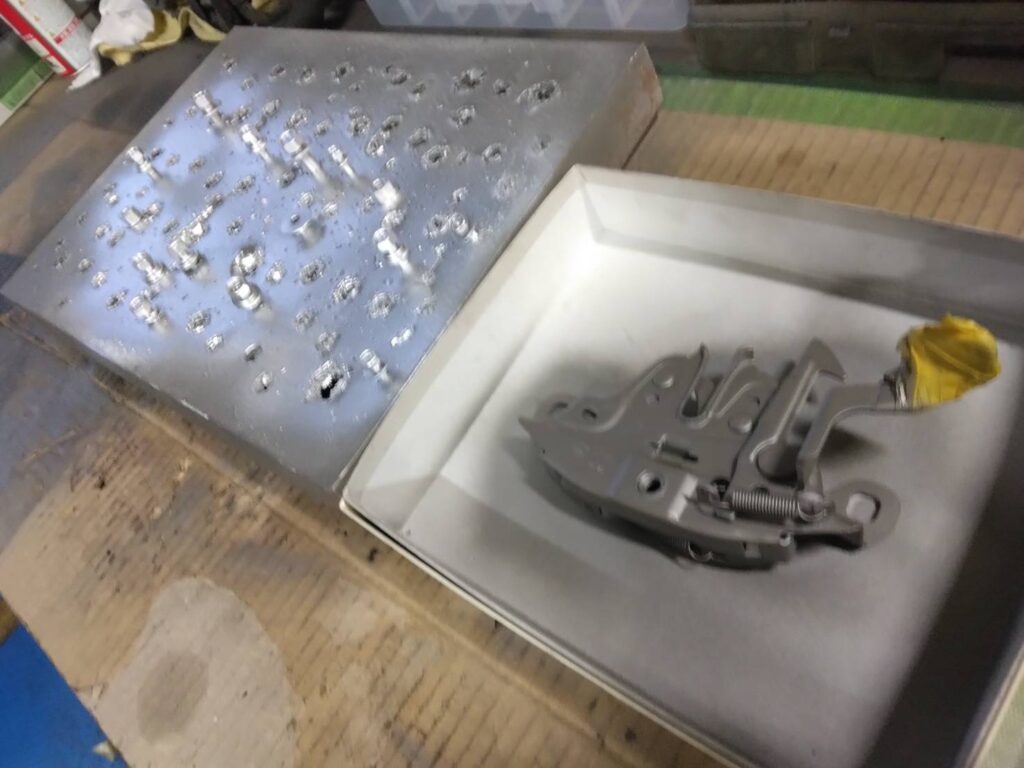 ボンネットキャッチの錆び取り塗装とキノコ栽培